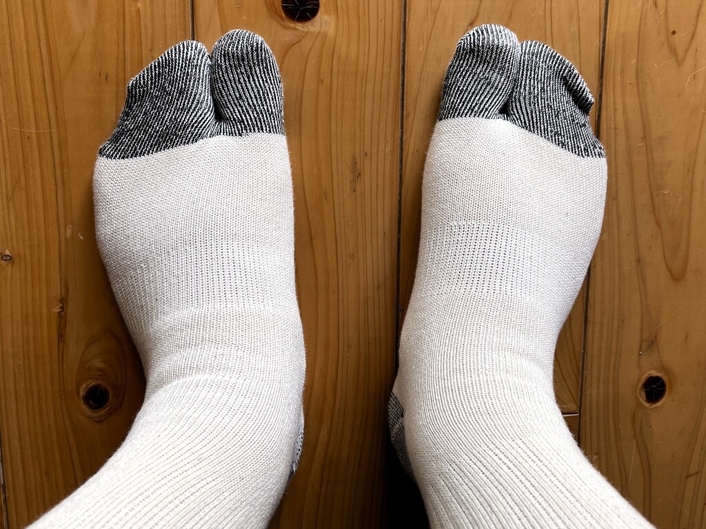 しかし、決して笑うことなかれ。右足股関節が不自由な私にとっては「履物」は非常に大切なアイテムなのです。とくに足場の悪い道や里山を散策するときには、足にフィットするこの「地下足袋」は欠かせません。本当は買い物などで街に出るときや、とくキャン△などのときにも履いていきたいくらいです(笑)