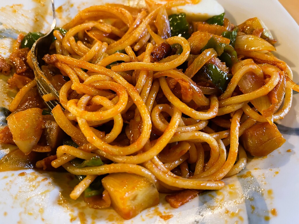 カレーはスパイシーで美味しかったです。そしてシェアして頂いたナポリタンは確かに「昔っぽかった」です。私が高校生時代に喫茶店でよく食べていたあのナポリタンの味でした。くぅ~「レスカ(レモンスカッシュ)」もあれば最高だったのにぃ(笑)