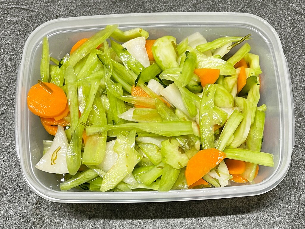 最後はこちら「箸休めには最高!・ブロッコリーの茎と大根とニンジンの浅漬け」です。