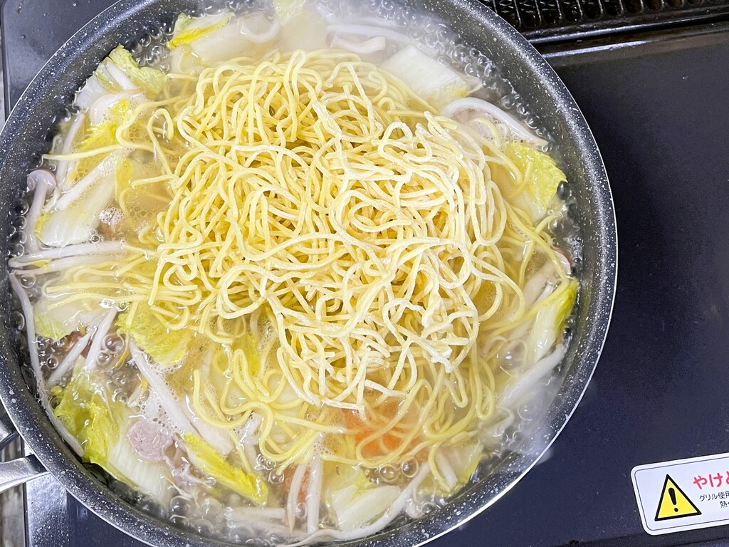 フライパン一つでできる「日清のタンメン」です。生麺タイプということで「きつねくぼ亭」のネタにはできないためここで紹介させていただきます(笑)