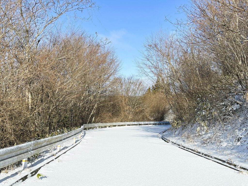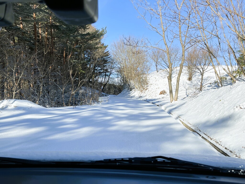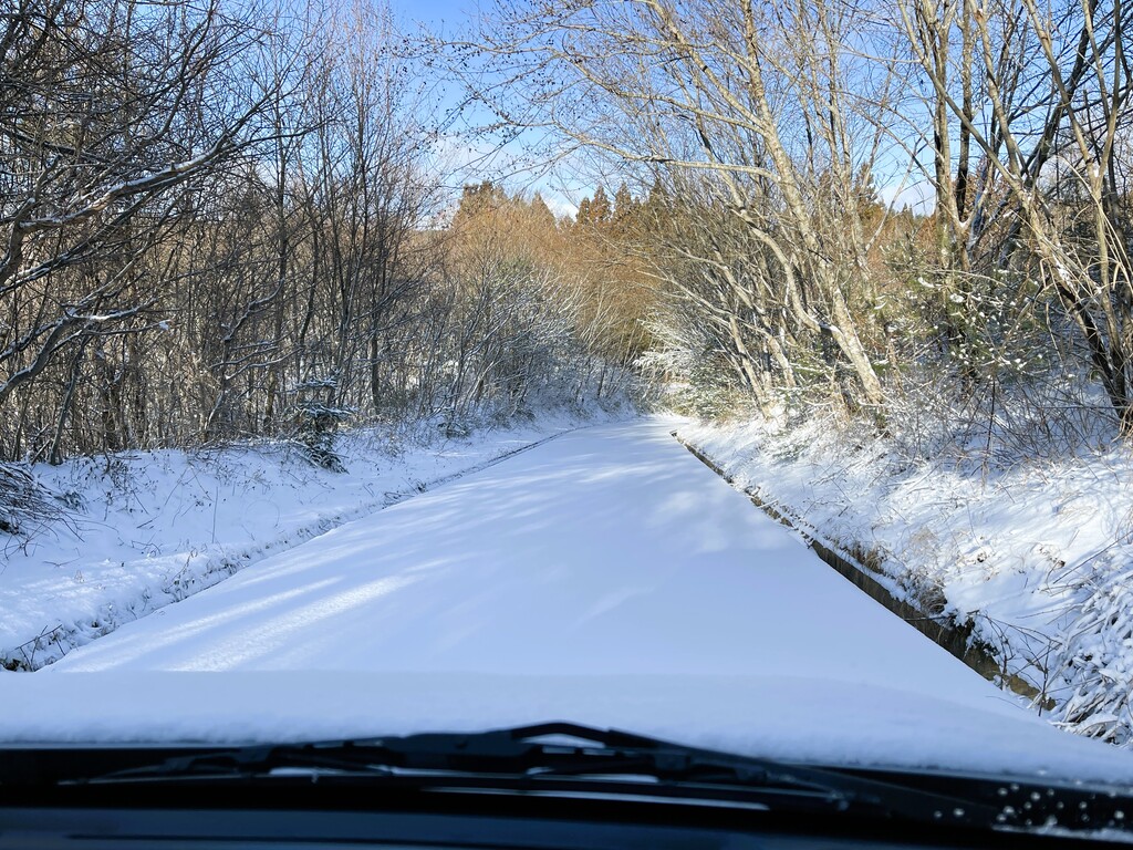 まだ誰も通っていない雪の道路を走るのって、意外と楽しいんですよね。クセになります(笑)