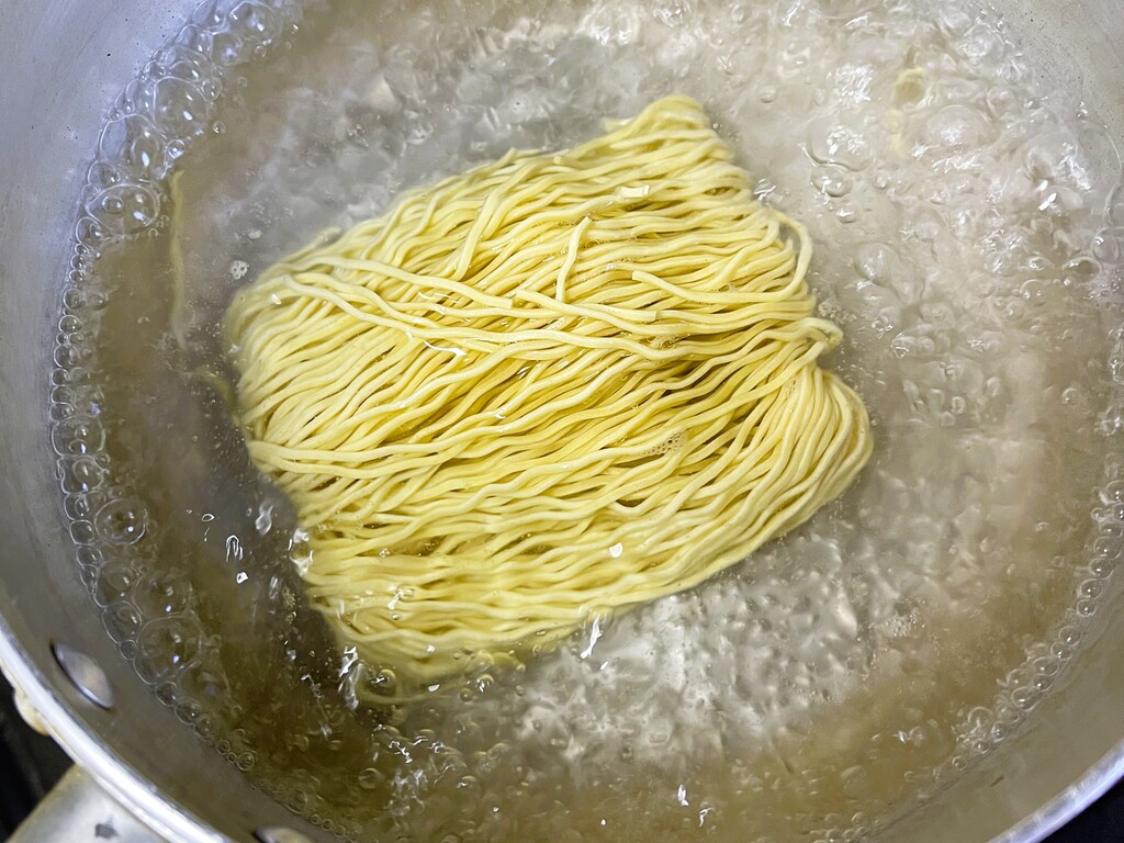 さっそく「生麺じっくり 二日熟成乾燥製法」で作られた乾麺を茹でていきます。