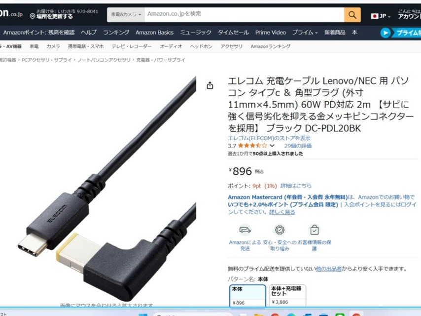 「エレコムの充電ケーブル」という商品。お値段なんと税込み896円。ただし、これだけで充電はできません。別に充電器が必要となるのですが、運よく、以前タブレット端末やワイヤレスヘッドホンの充電用に購入してたやつが使えそうです。