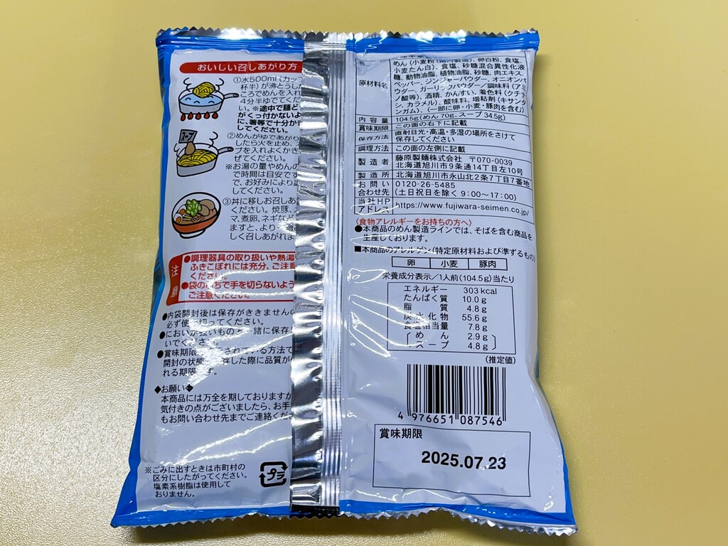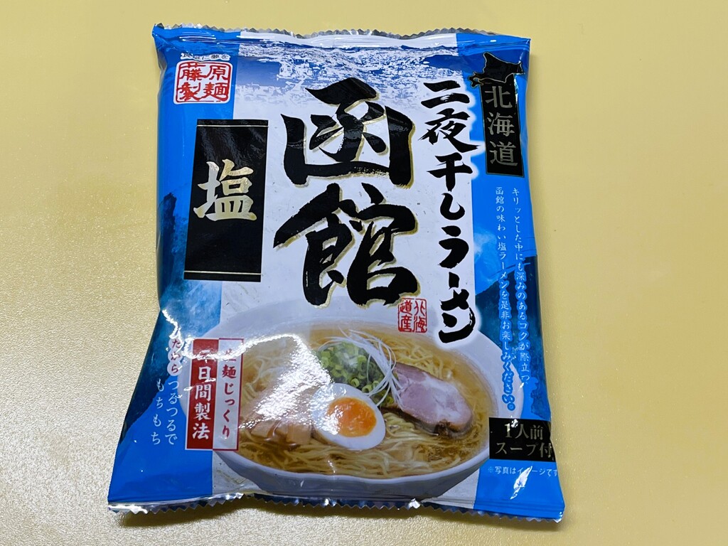 ひろちゃんの妹さんから送ってもらった「tokuchan一押しのインスタント袋麺メーカー」である北海道旭川市の「藤原製麺」さんシリーズの第4弾となる「北海道 二夜干しラーメン・函館 塩」です。