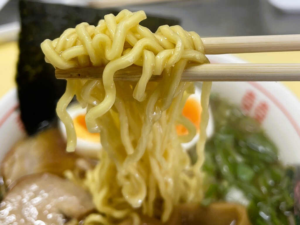 あっ、うん、いい、間違いない(笑) 藤原製麺さんの比べると縮れが強く、ツルツル感が強い感じがします。でも、これはこれで心地よい食感でした。