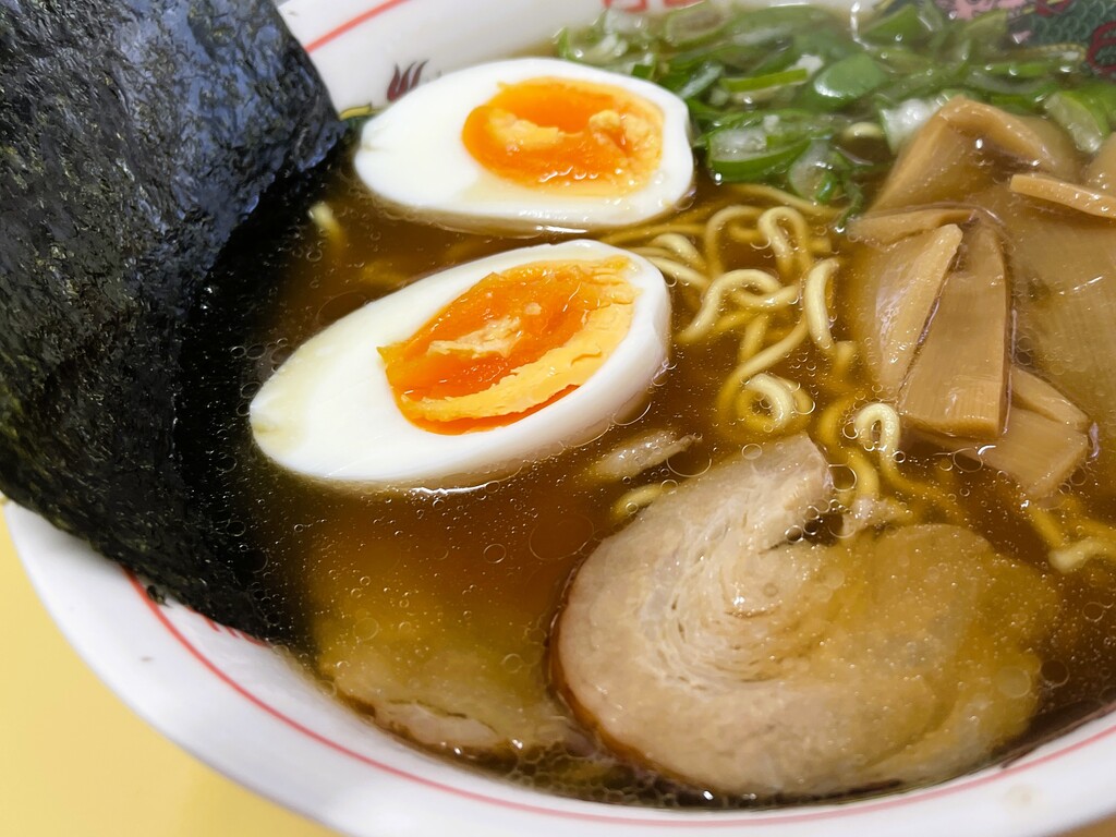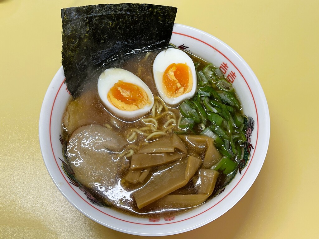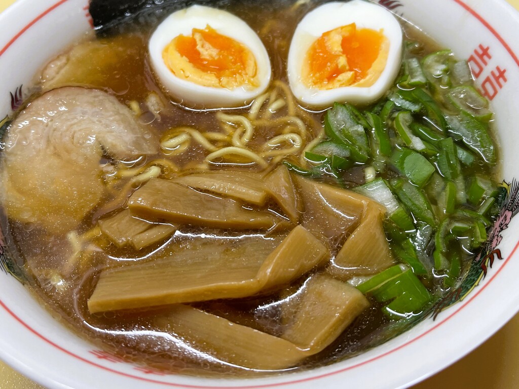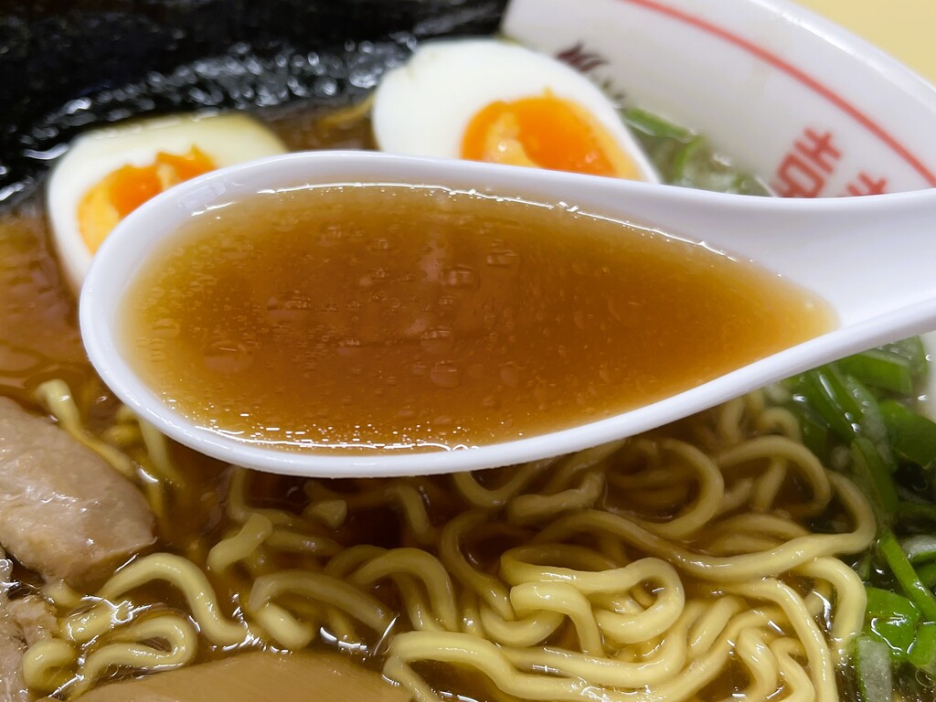 シンプルだけどコクも感じられる醤油スープ。パッケージに記載されている「昔ながらの なつかし しょうゆ油味」どおりのお味です。美味しい。