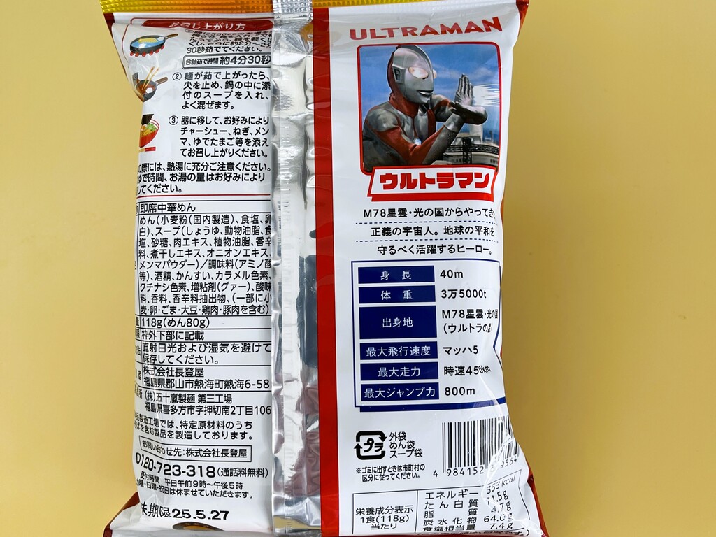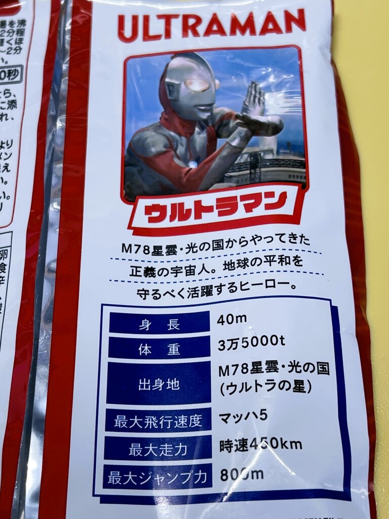 私が住んでいる銀河系から300万光年離れた「M78星雲・光の国」から買ってきた、その名も「ウルトラマンラーメン」です(笑)
