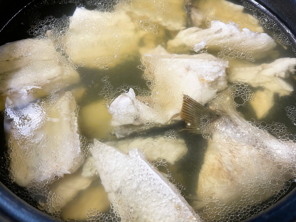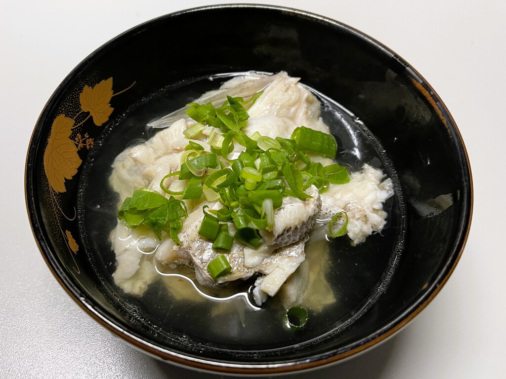 「スズキのアラ汁」です。「鰯七度洗えば鯛の味」ということわざがあるように、魚のアラも丁寧に下処理をすればとても美味しくいただけるんですよね。
