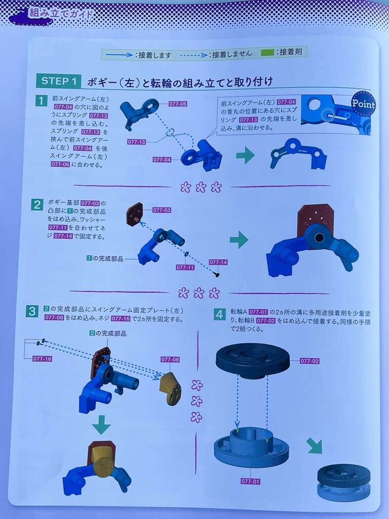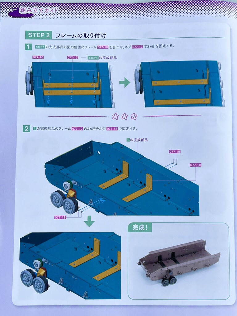 「ボギー(左)と転輪、フレームの取り付け」。はぁ~、またボギーか・・・😭(笑)