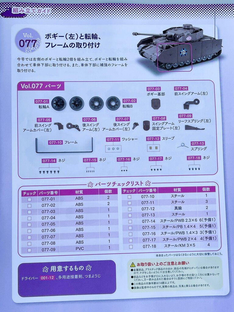 ということで、本日も定期購読しているアシェットの「週刊 ガールズ&パンツァー Ⅳ号戦車H型(D型改)をつくる」の続きをお送りします。今回も前回とあまり代わり映えのない内容になっているガルパン制作です。が、後半にはいつもの「本日のオマケ」もありますので、どうぞ最後までお付き合い下さいませ🙇