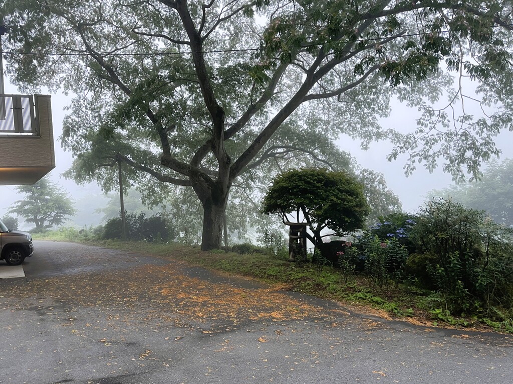 「ネムノキ」から落ちた葉や花がいっぱい。雨が降ると、その後2~3日は掃除がしづらい状態になるので、今回やっつけてしまうことにしたのでありました。