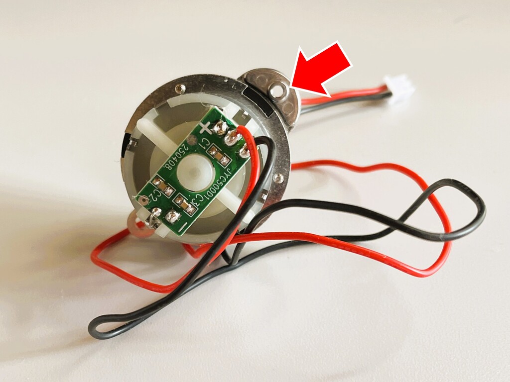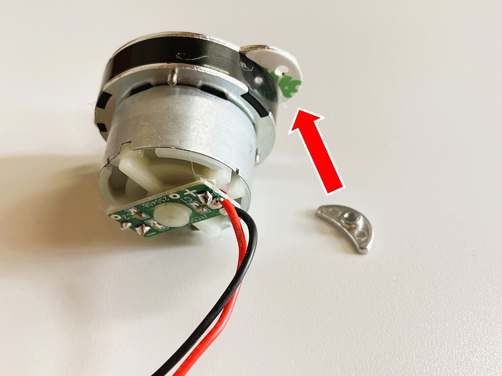 続いてはそのモーターに金属のパーツを両面テープで貼り付けます。