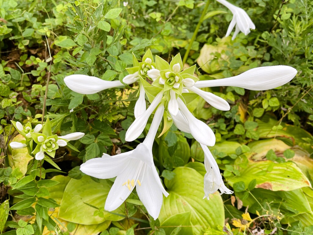 これは「ギボウシ」の仲間なんですが、「マルバタマノカンザシ(丸葉玉簪)」といいます。真っ白な花が素敵でした。