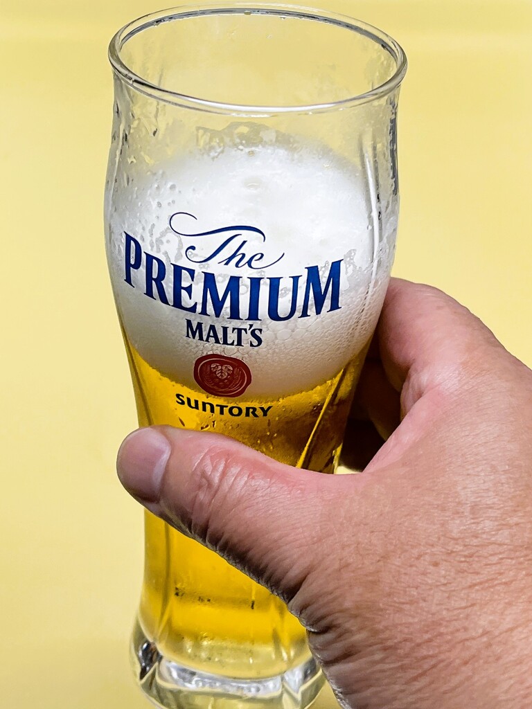 せっかくなのでサントリープレミアムモルツ用のグラスで飲んでみました。