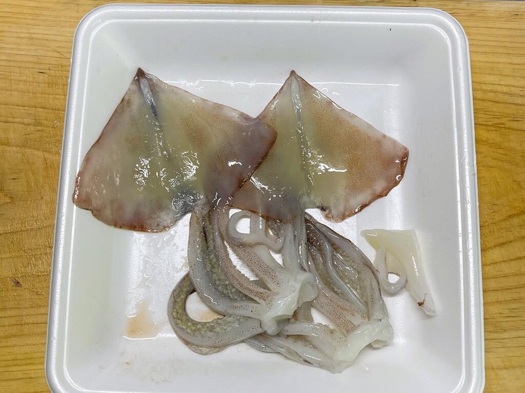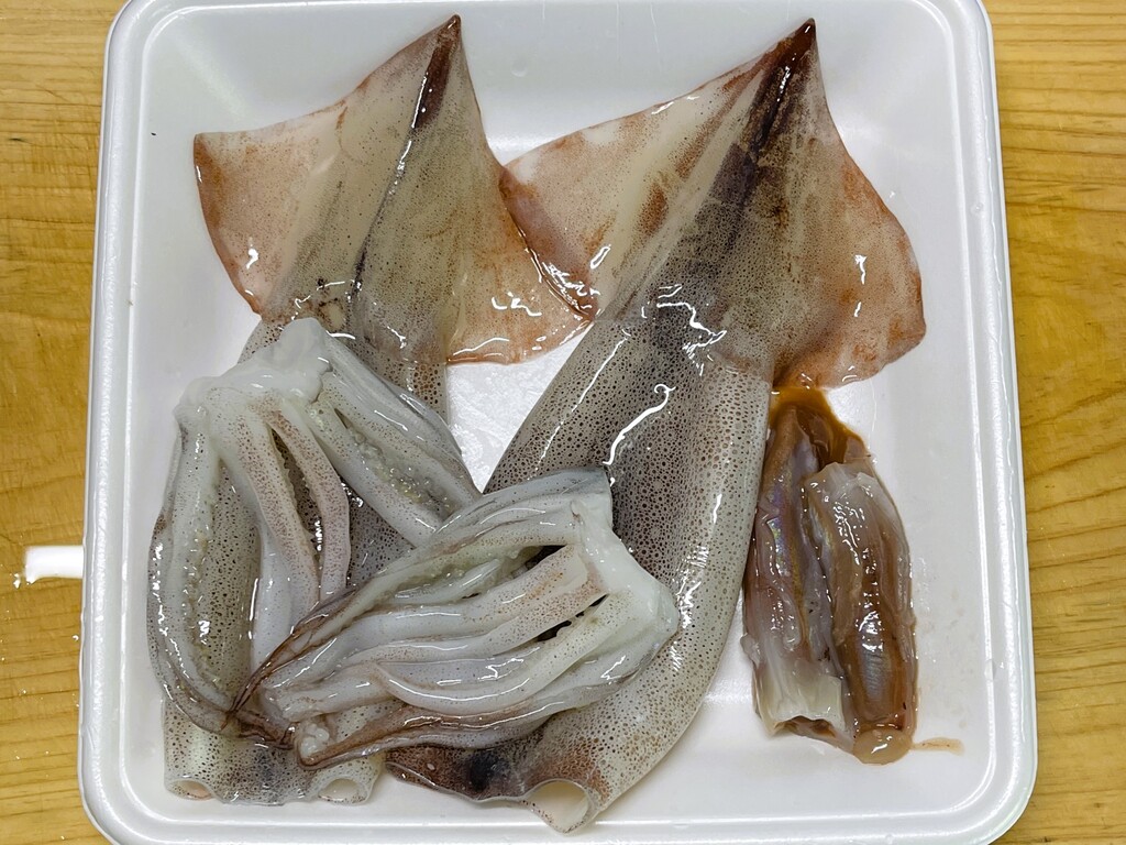 内蔵を取って、身とゲソに切り分けました。大事な「ワタ(肝)」もちゃんととってあります(笑)