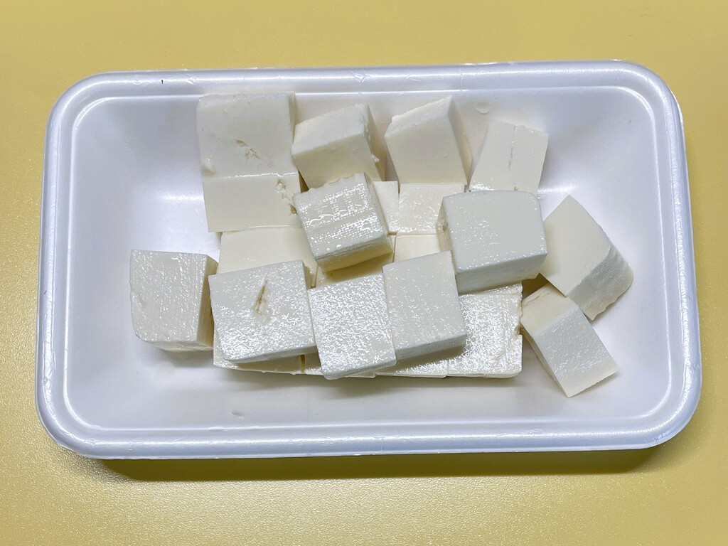 あれ? 「回鍋肉」と「青椒肉絲」はポーションが4個入っていたのですが、この「麻婆豆腐」は3個でした。ただし他のヤツと比べると、一回り大きいポーションとなっています。