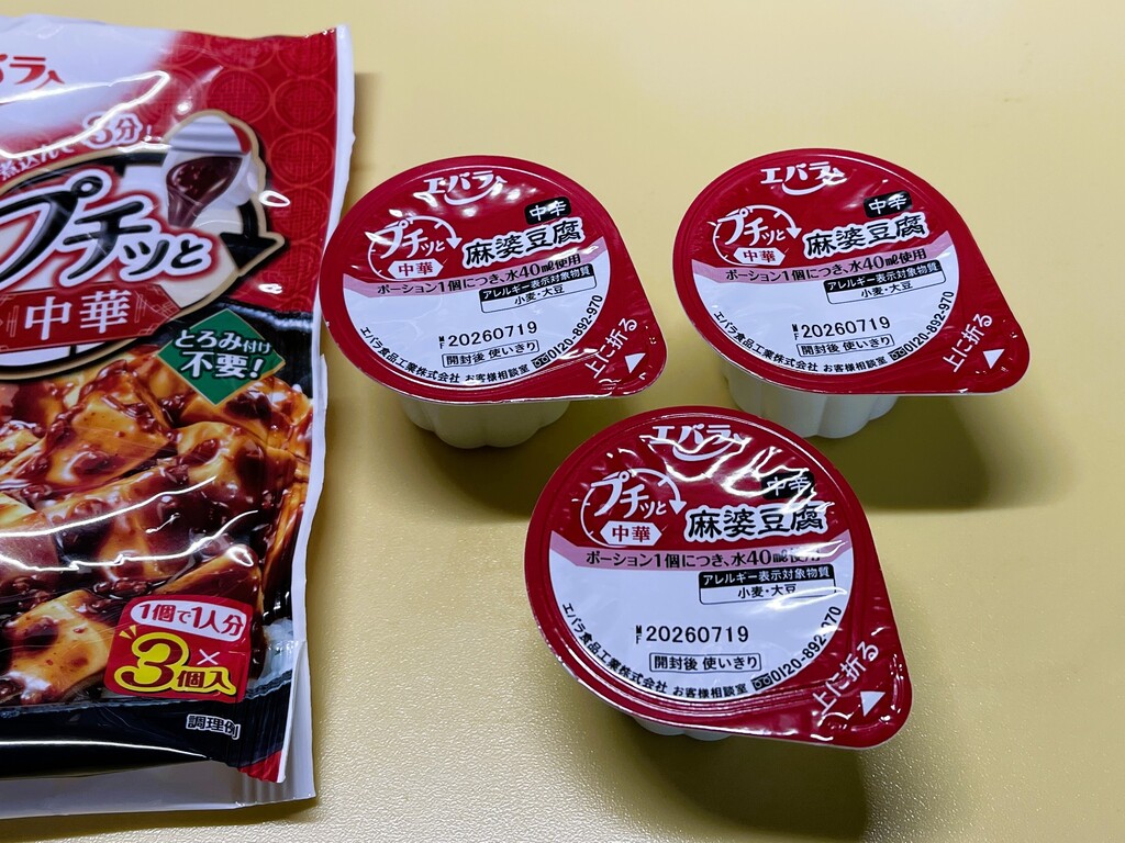 でも、こうして1人分の麻婆豆腐がお手軽に作れるというのはありがたいですね。アレンジで麻婆丼や麻婆ラーメンなんかも作れそうです。ポーションはあと2個残っていますので、試してみたいと思います。