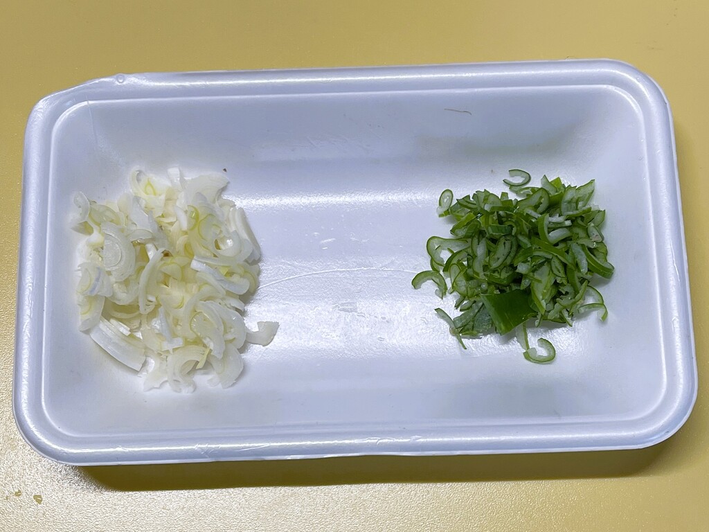 ネギは白い部分と青い部分を分けてカットしました。