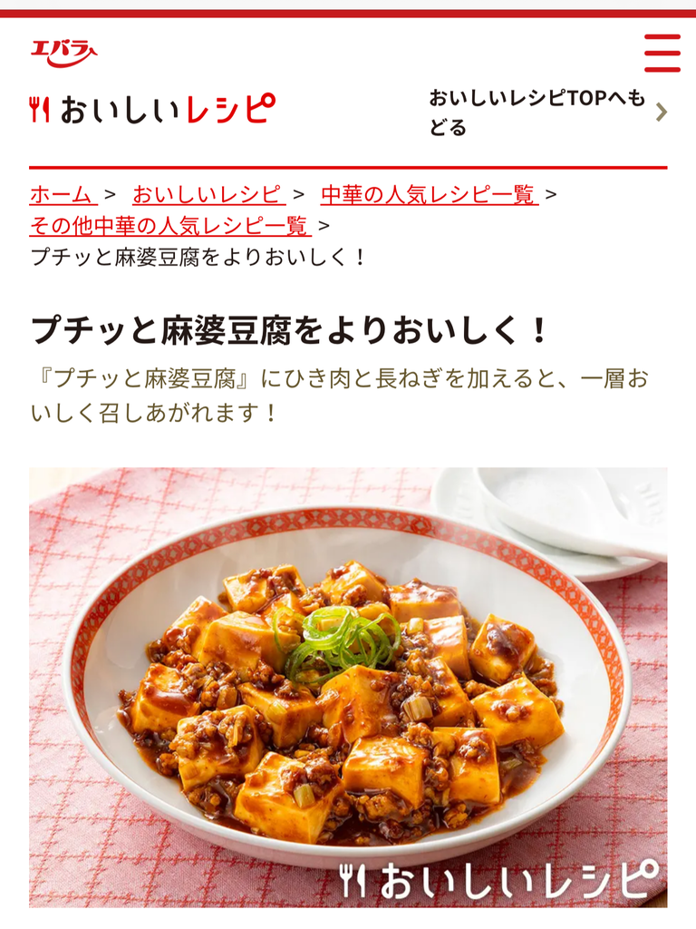 実はこの「プチっと中華 麻婆豆腐」、ひろちゃんがとあるスーパーで見つけて買ってきてくれたもの。愛する夫のブログネタのために必死で探してくれたみたいです(笑) ありがたや、ありがたや🙏