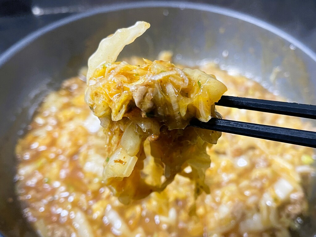実はこの商品、きつねくぼでは常備品となっております。今回は白菜ですが、ピーマンでもナスでもモヤシでも、そしてなんとキュウリでも、これで和えるだけでおかずの主役の一品が簡単にできちゃうので。