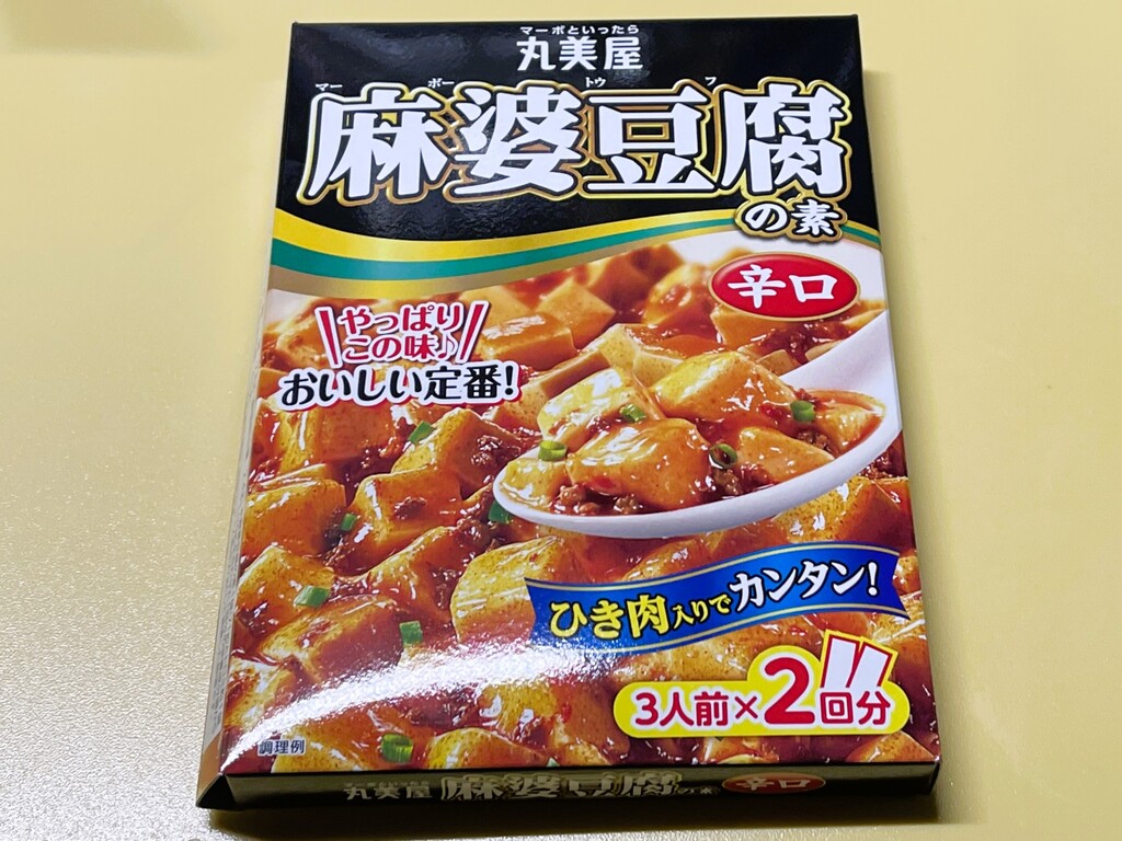 丸美屋の「麻婆豆腐の素」。そうです、豆腐の代わりに白菜を入れるだけの簡単調理という訳です(笑)
