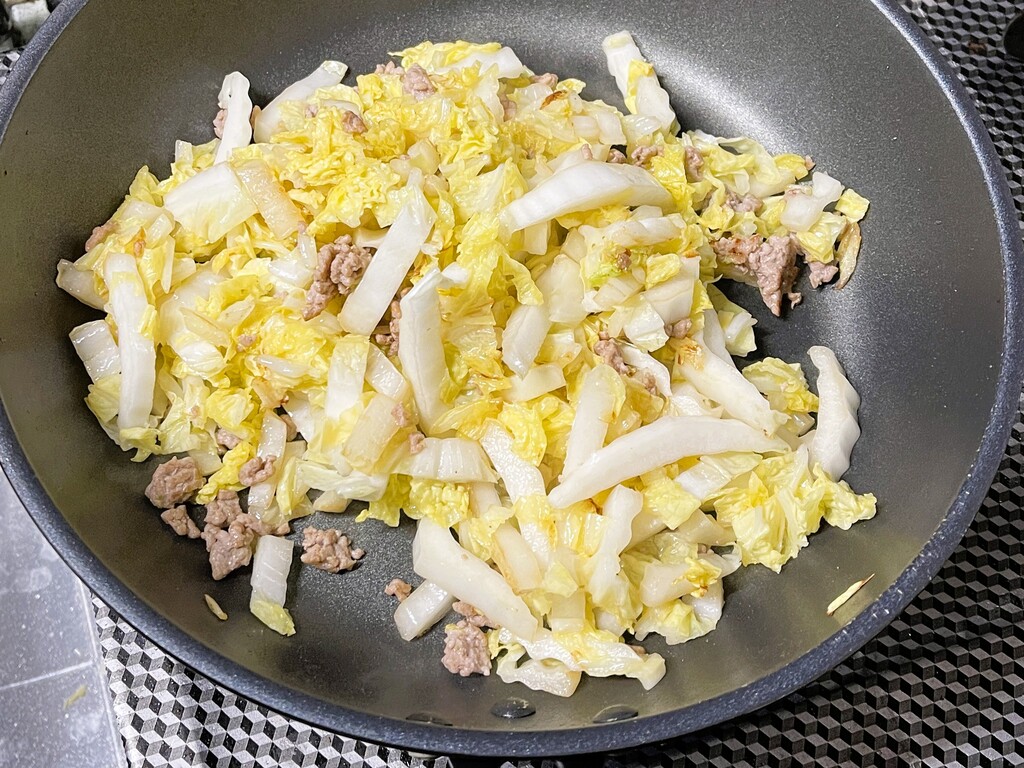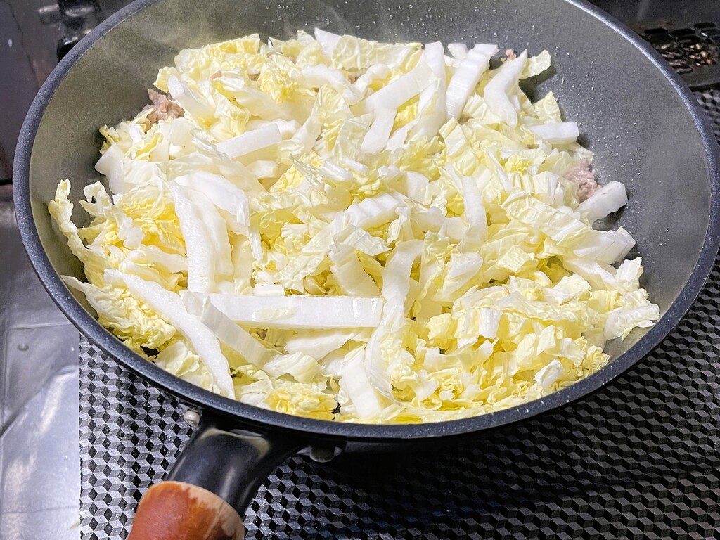 まずは白菜を細切りにカットして・・・