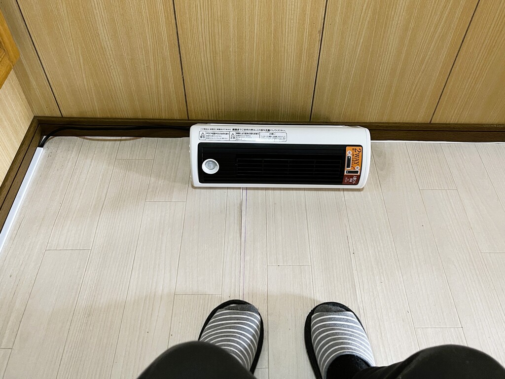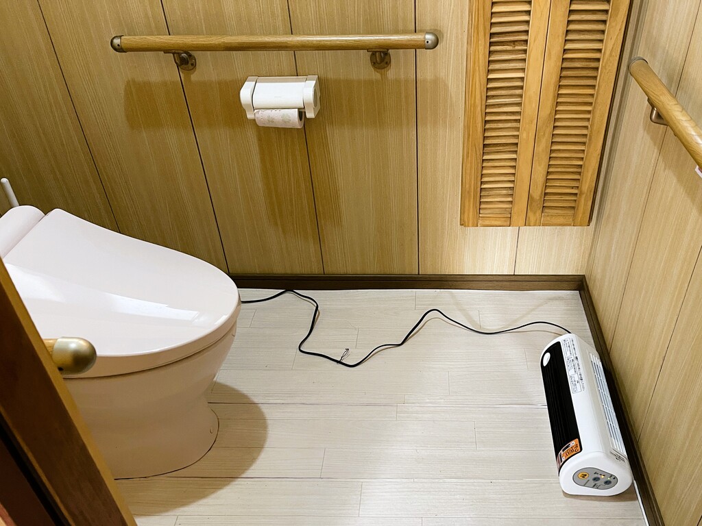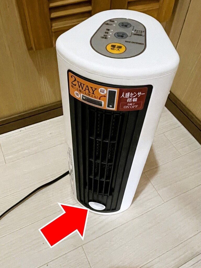 このファンヒーター、人感センサーが搭載されていてトイレに入ると自動的にスイッチがはいり温風が送風されます。とても便利なんですが、そのセンサーが優秀すぎるんですわ(笑)