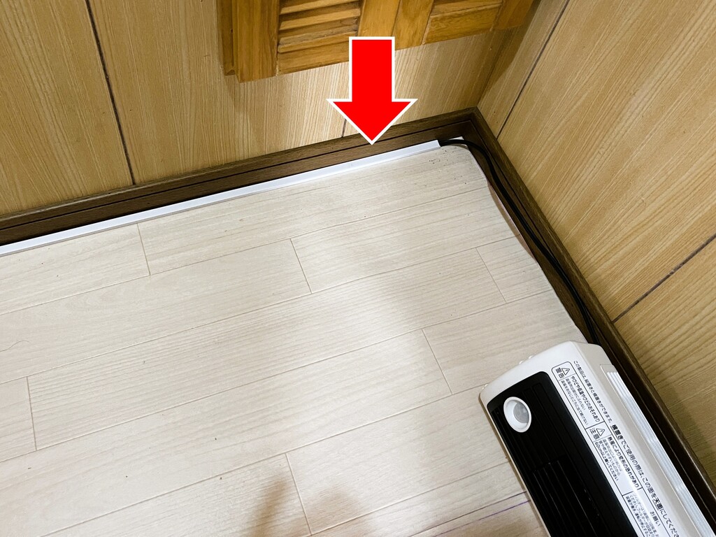 設置の位置も決まったので、電源コードを危なくないように養生することにしました。