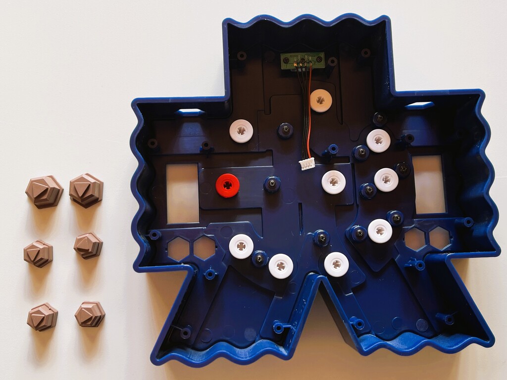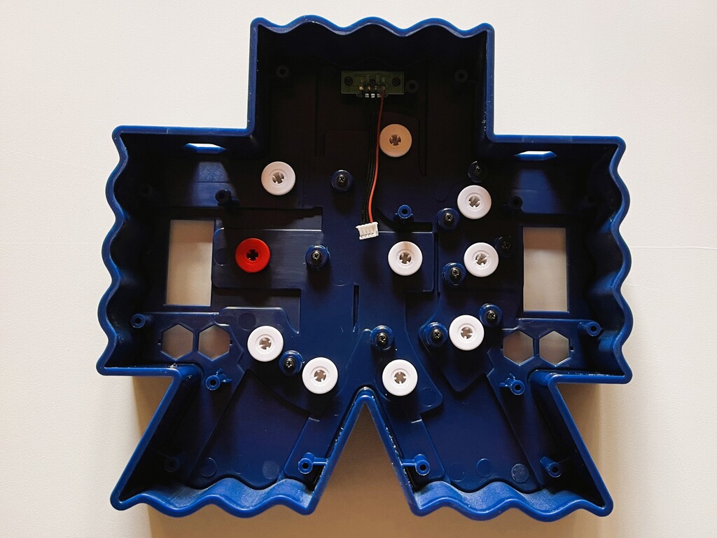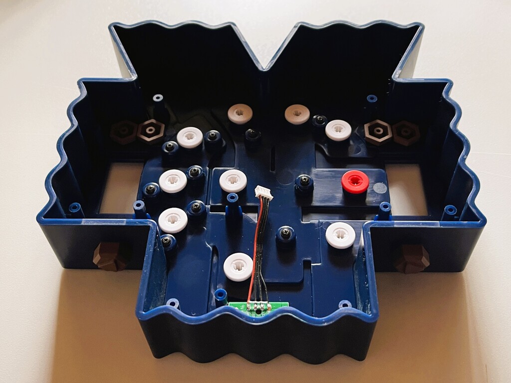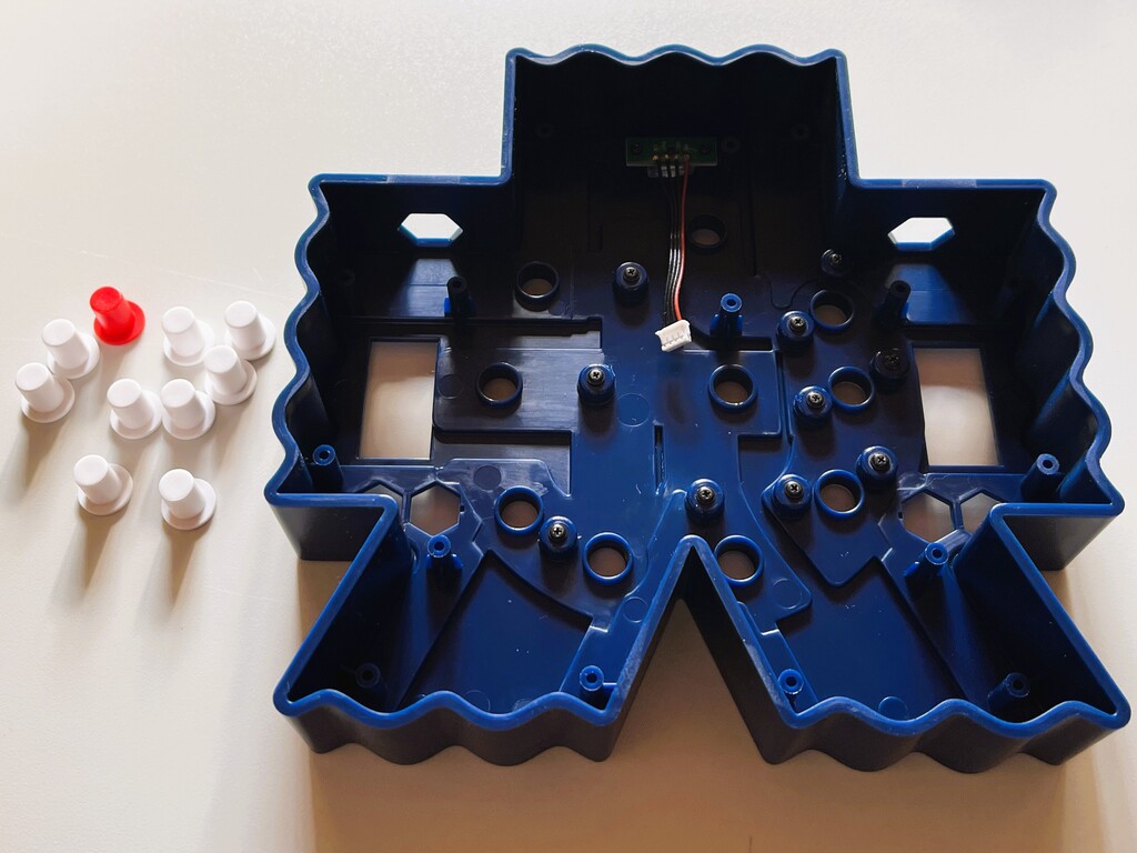 まずはリモコンケースに赤と白のボタンをはめ込んでいきます。
