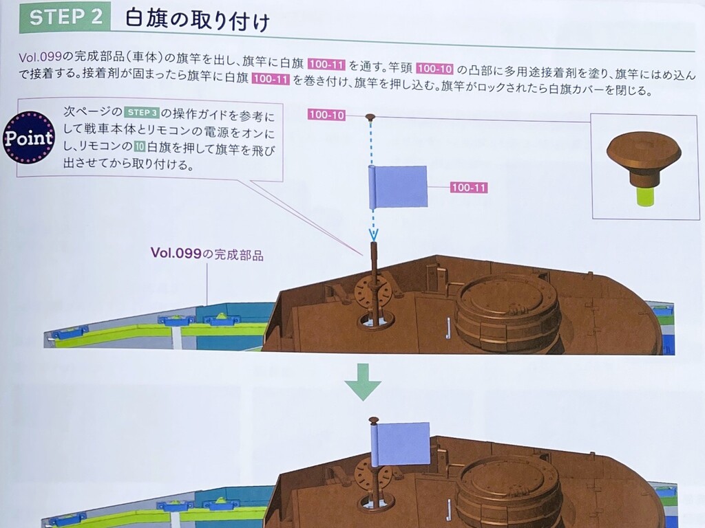 最終号の作業は「リモコンの組み立て(2)と白旗の取り付け/完成」とな。