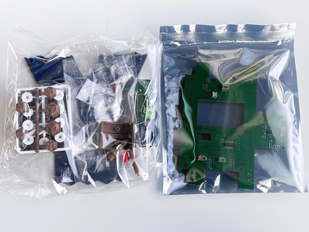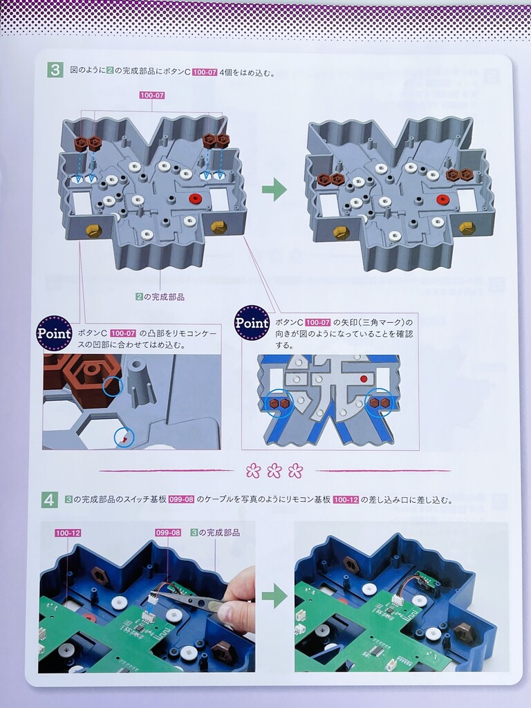次はリモコンケース背面のパーツに、LEDカバーとスイッチ基盤をネジ止め。