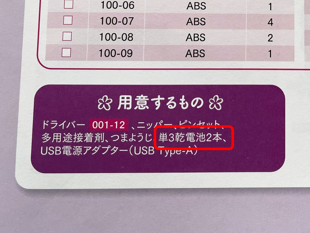 組み立てガイドには「単3乾電池2本」と書かれていたのですが・・・
