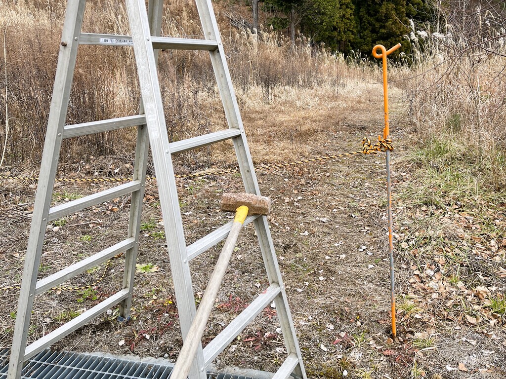 鉄製の「掛矢(かけや)」で杭を打とうと思ったのですが・・・