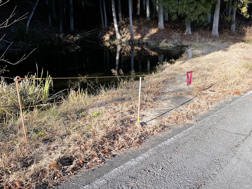立入禁止のロープを張っている杭が倒れています。これは自然に倒れたのではなく、どうみても「人」の仕業ですよね。まさかあの輩が・・・(笑)