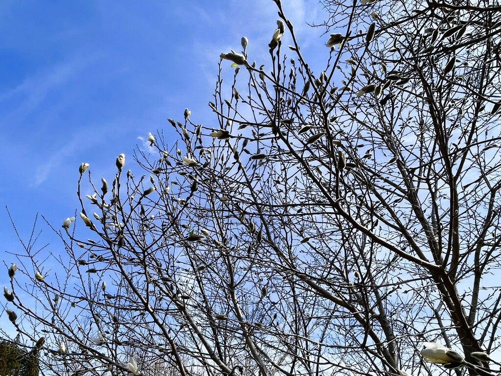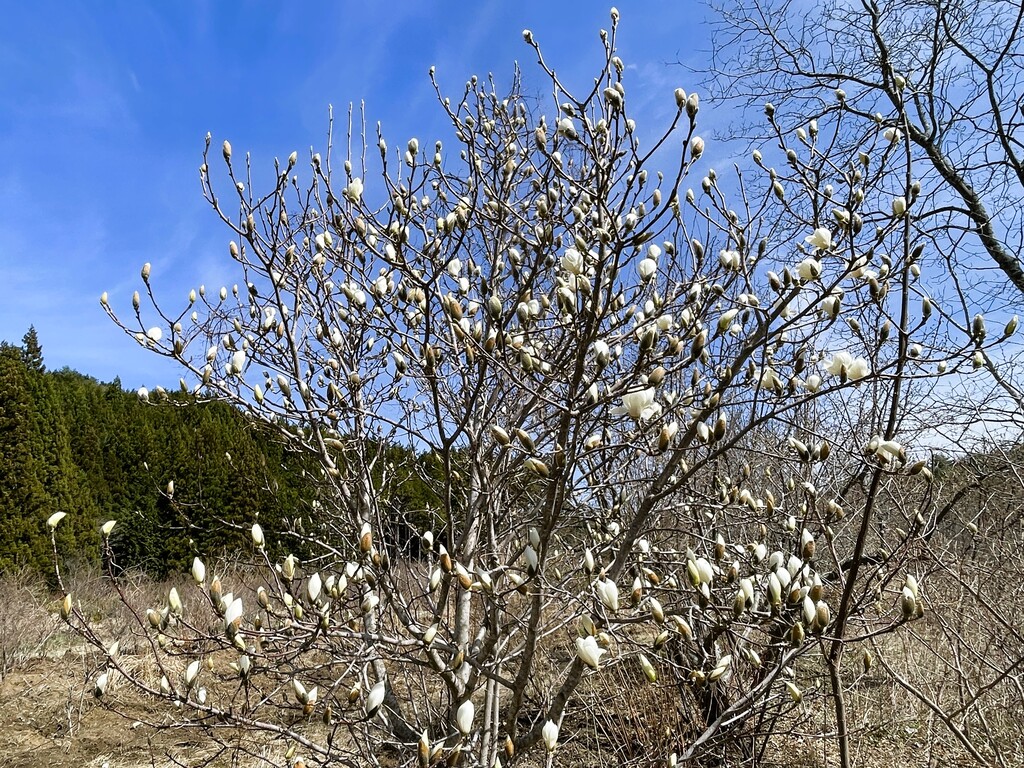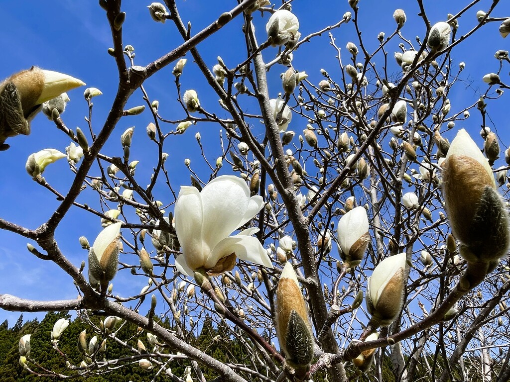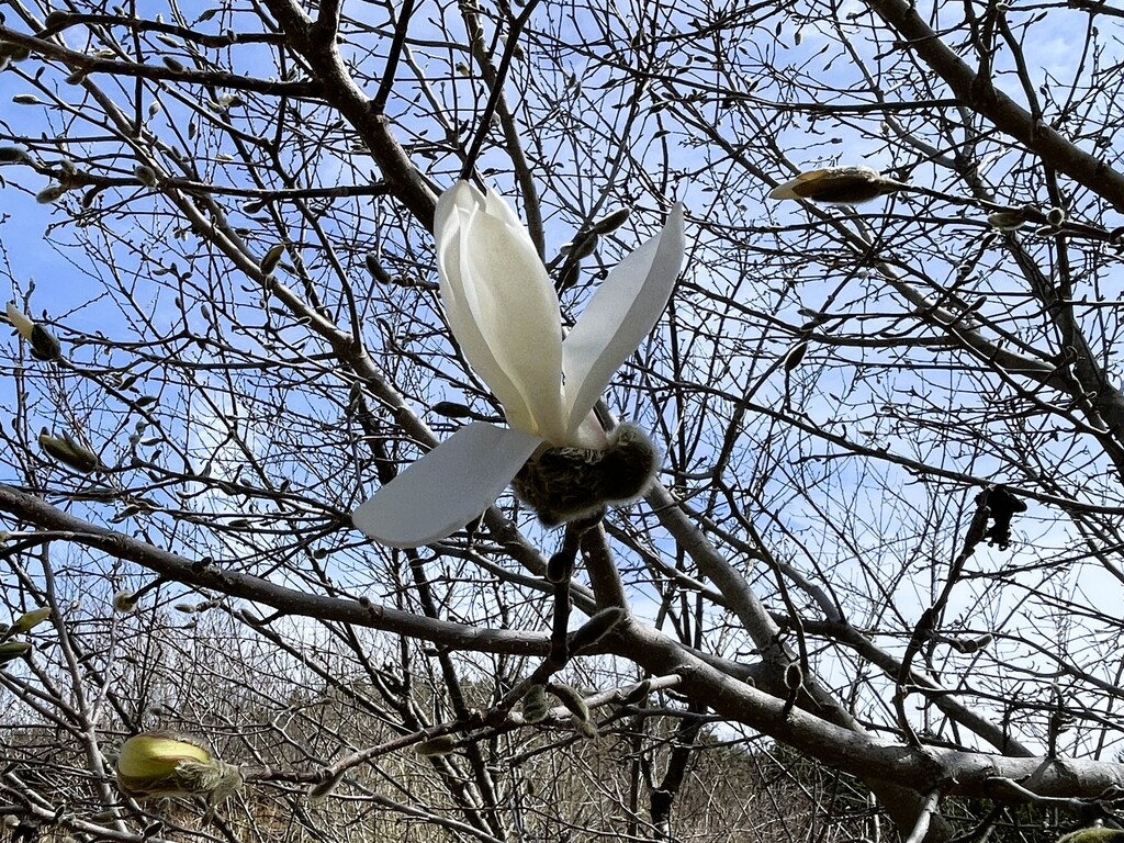 先ほどの「コブシ(辛夷)」の近くにある「ハクモクレン(白木蓮)」も開花していました。