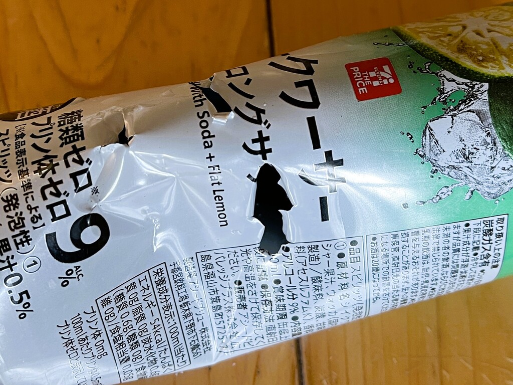 なんと、穴が開けられていました。アルミ缶とはいえ、こんなふうに穴を開けるなんて・・・ まさか熊か?