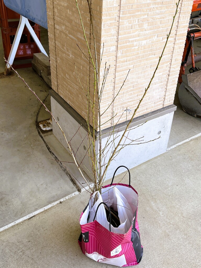 スーパー爺ちゃんが増やした「ハナモモ」の苗木。「既にあるからいらない」って言われても持っていくもんね(笑)