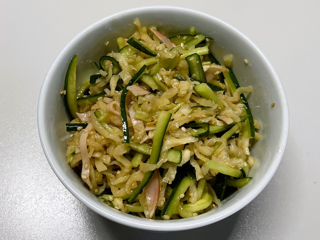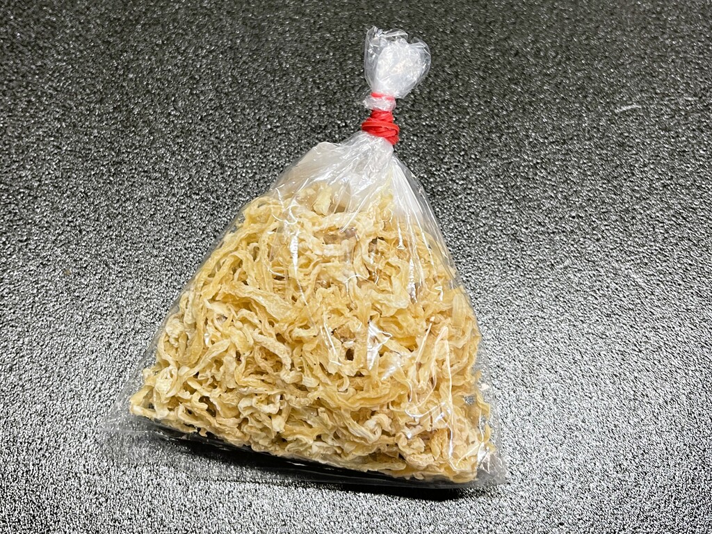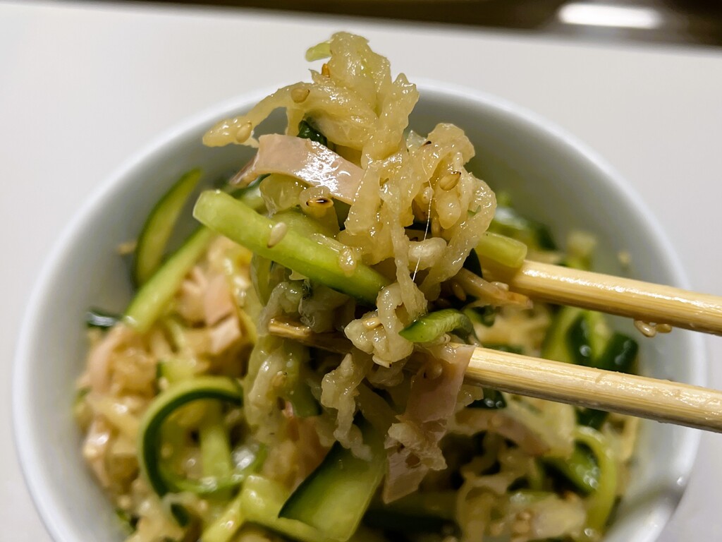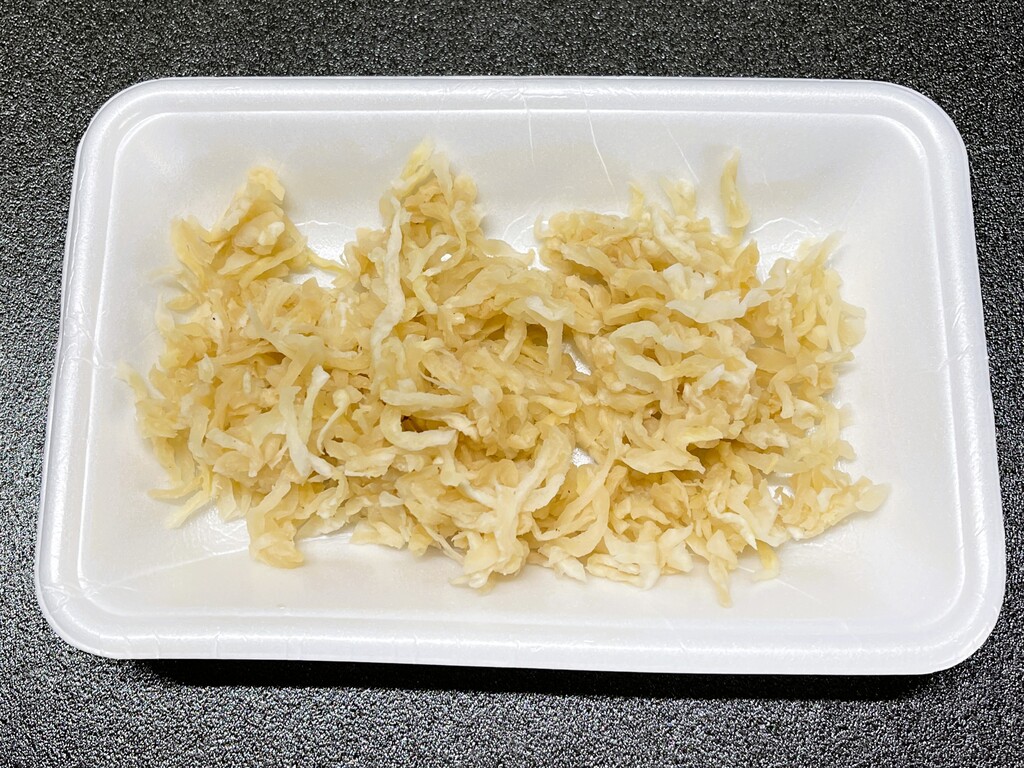 また、見た目以上に具沢山なんですよね。シーフードミックスみたいなものも入っているようです。途中からは餃子用のラー油ーを入れてみました。