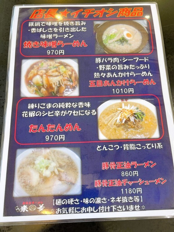 どれにしようかな・・・。ふと隣のテーブルをみると「焼き味噌らーめん」を食べているみたいです。鉄鍋で提供されているようで、とても美味しそうにみえました🤤