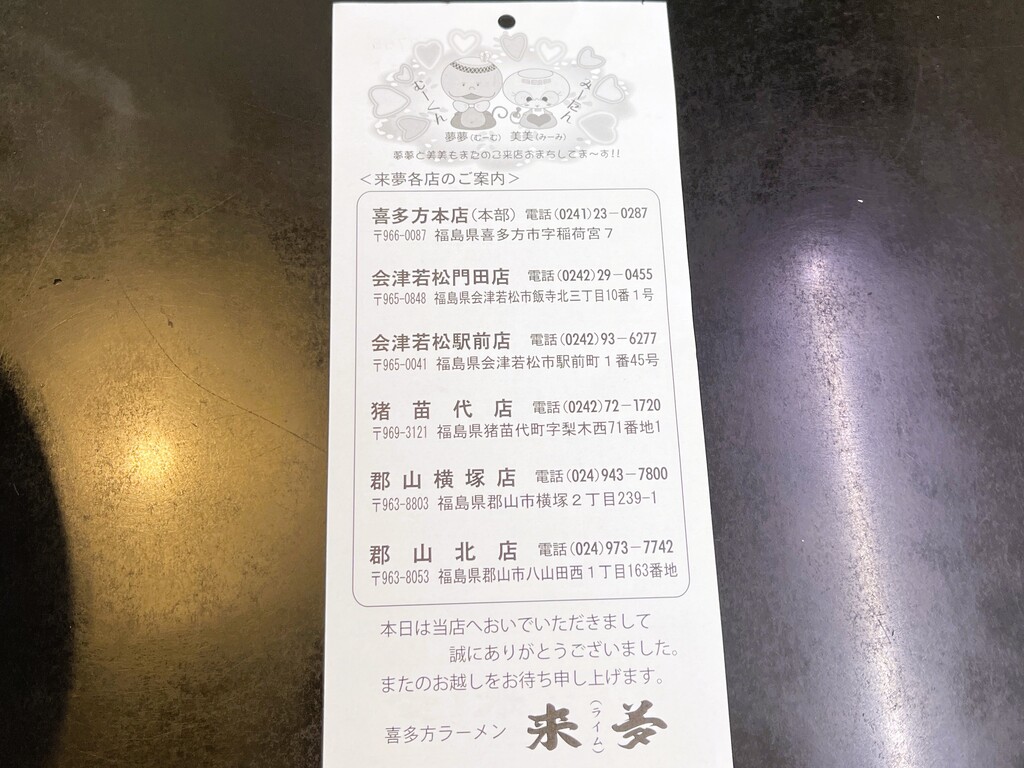またまたスーパー爺ちゃんといっしょにお昼を食べに立ち寄った「喜多方ラーメン 来夢 郡山横塚店」さん。