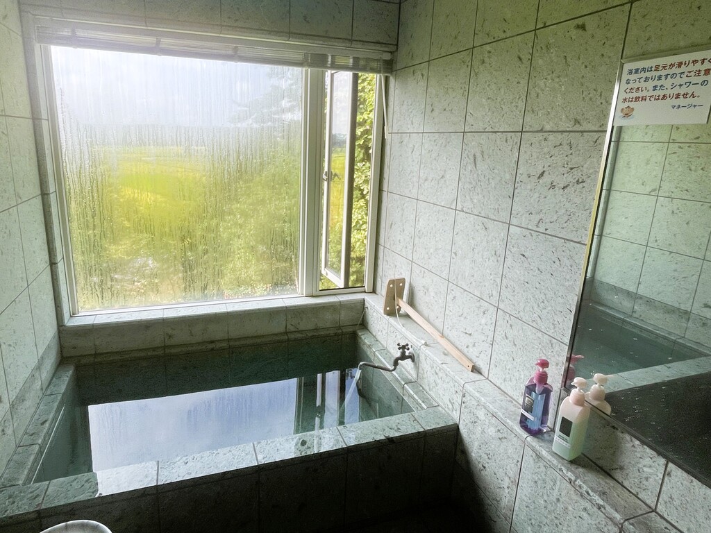 さっそくひとっ風呂いただきました。熱めのお湯が最高! 泉質はナトリウム-硫酸塩・塩化物温泉とのことですが、湯上りは肌がしっとりすべすべになったような気がしました。
