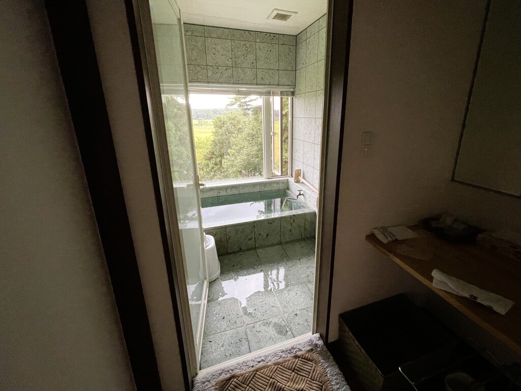 3部屋あるんですが、全てに源泉かけ流しの天然温泉のお風呂が付いています。