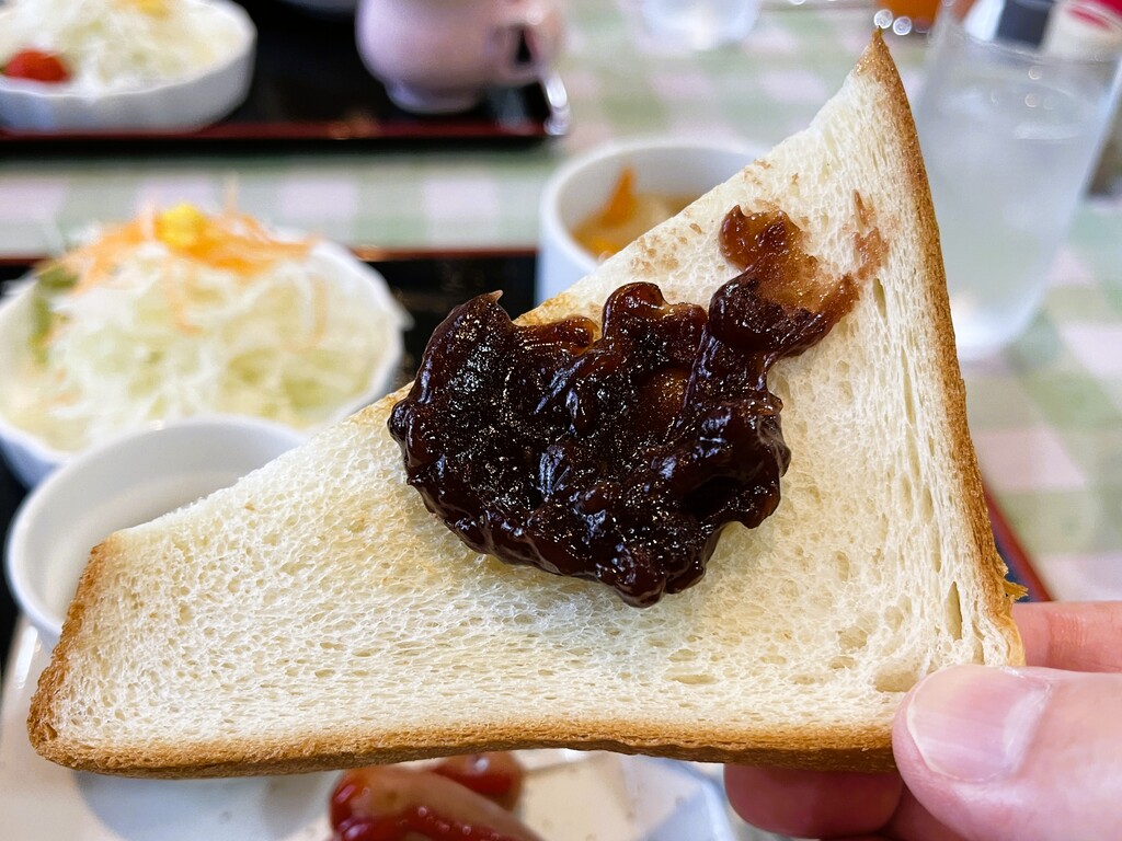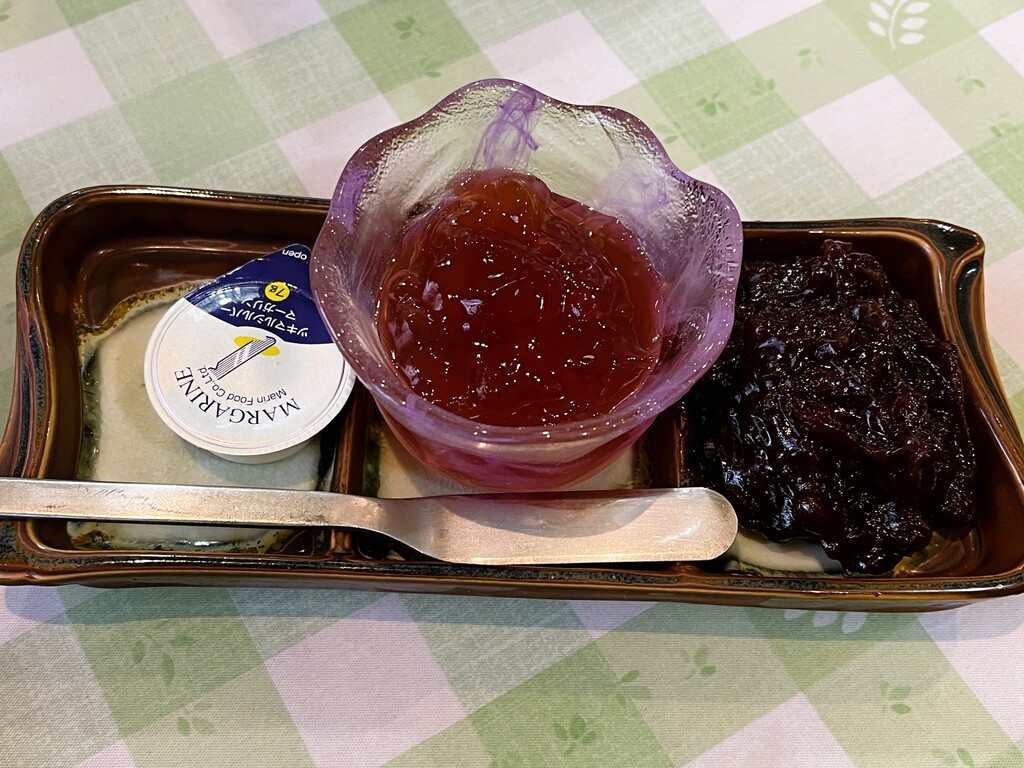 パンにはこちらの「マーガリン、ジャム、あんこ」を付けて食べます。