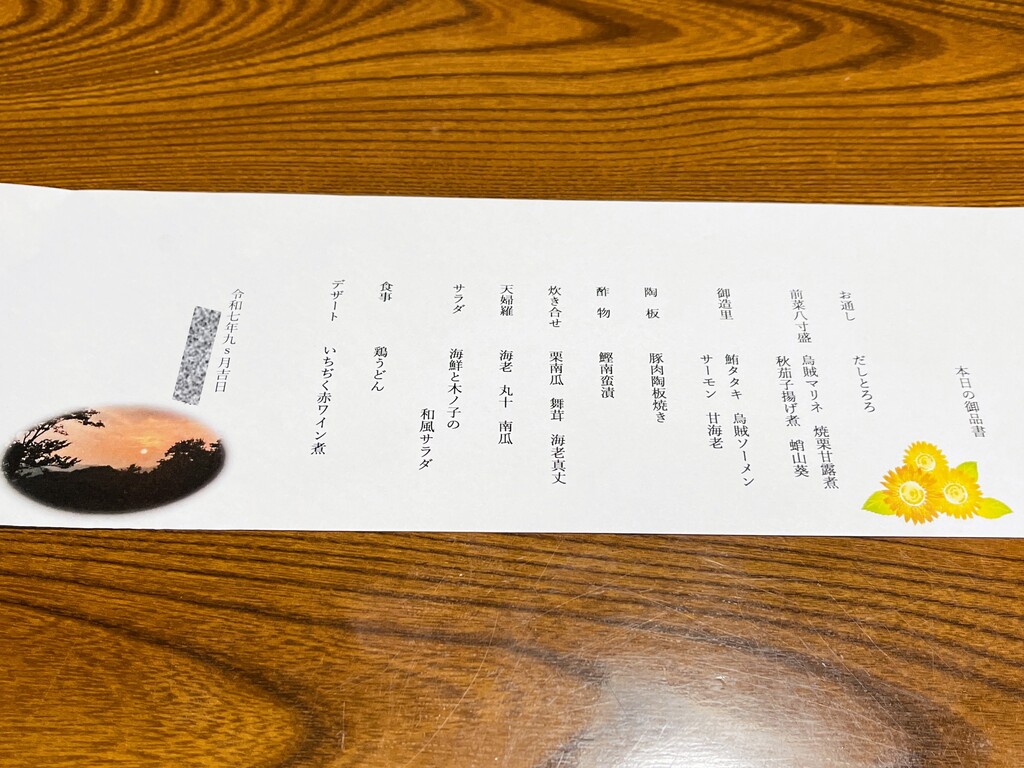 こちらが今夜のお品書きです。