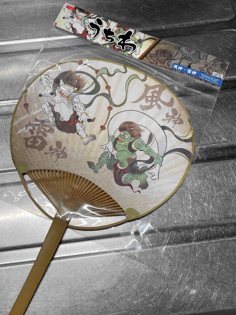 何のために買ったのか忘れましたが「風神・雷神」のイラストが載ったうちわです(笑)