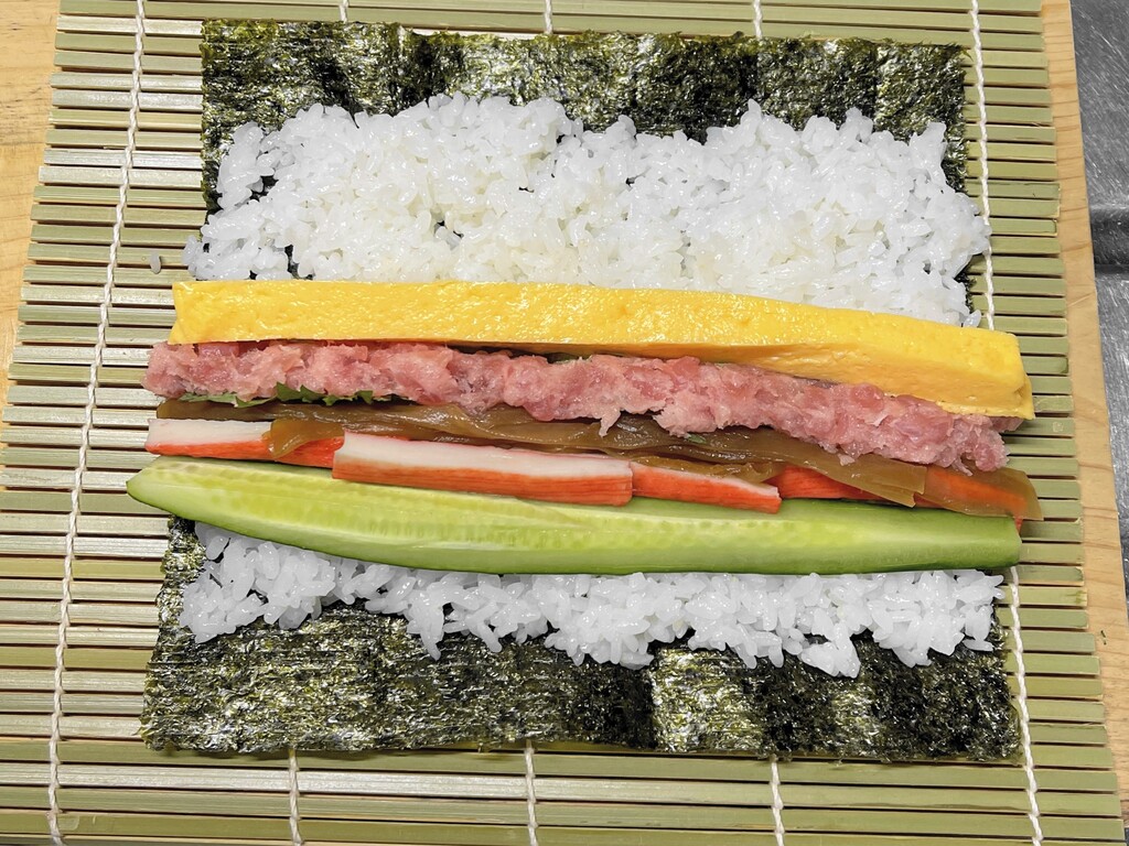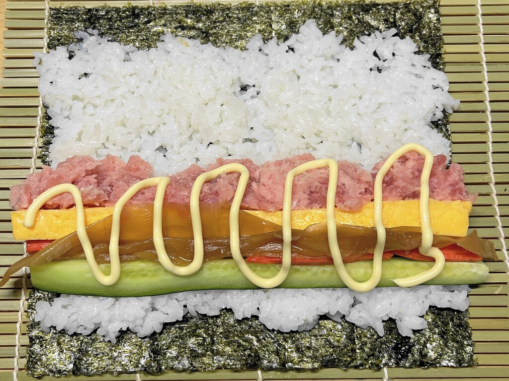 ということで「すし飯」、「具材」の準備が整いました。さっそく巻いていきたいと思います。