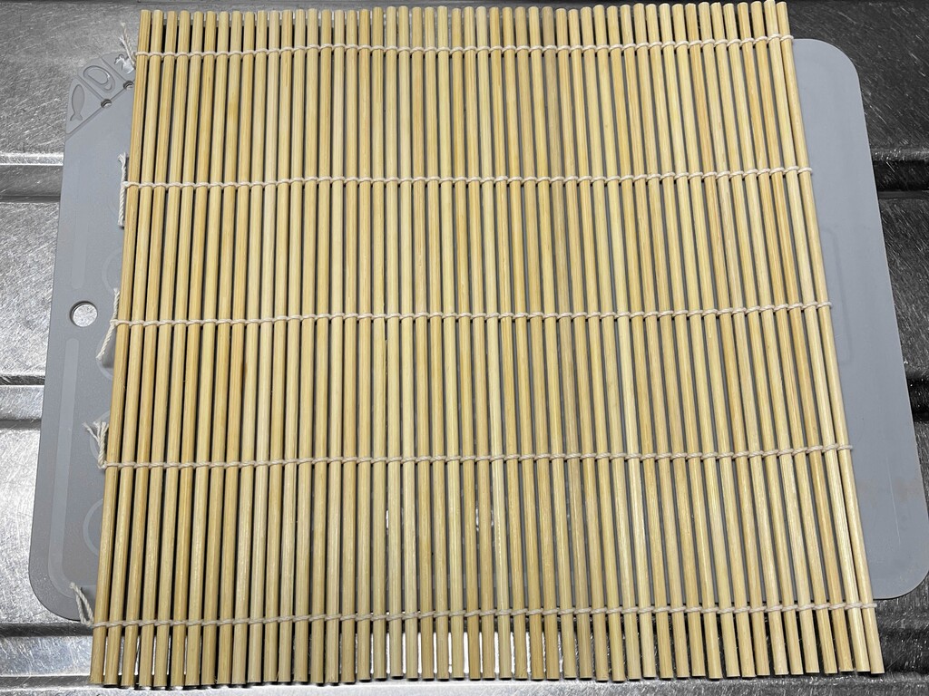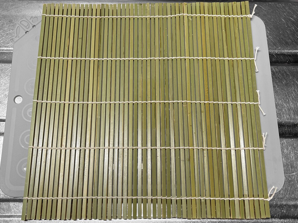 この道具の名前は「巻きす」というそうです。私はてっきりこの側(竹の内側)に海苔を置いて巻いていくんだろうと思っていたのですが、間違っていました。