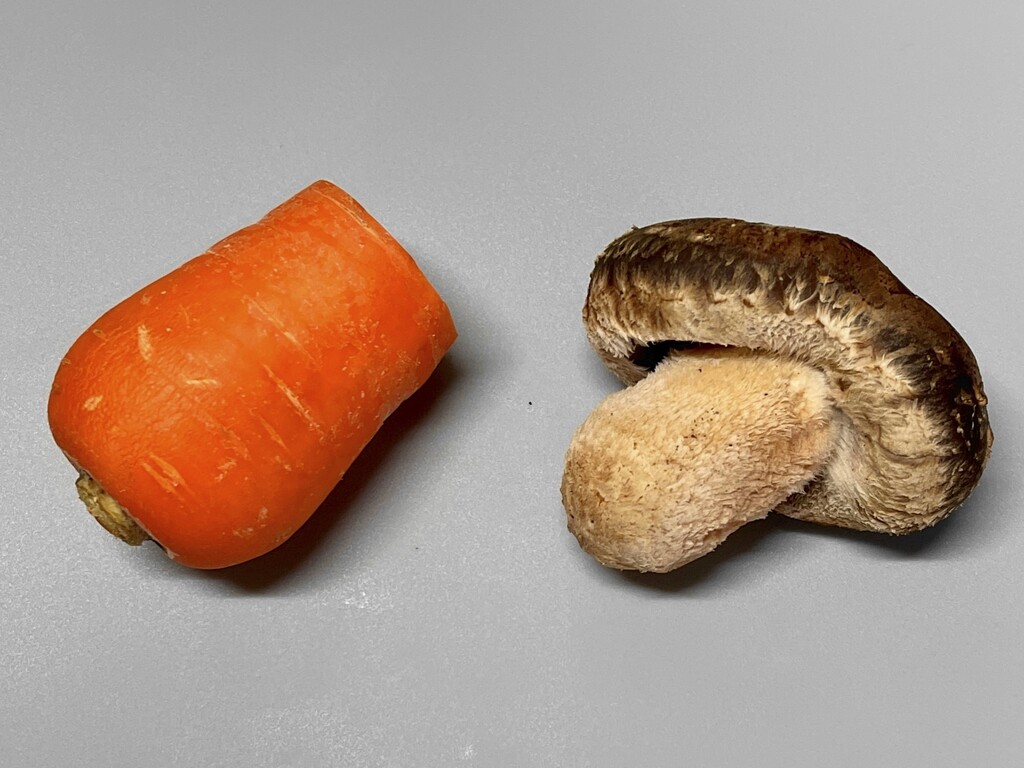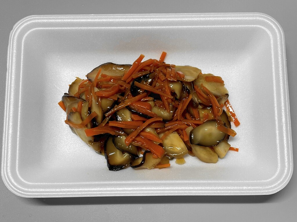 材料は冷蔵庫に残っていた「原木シイタケ」と「ニンジン」です。