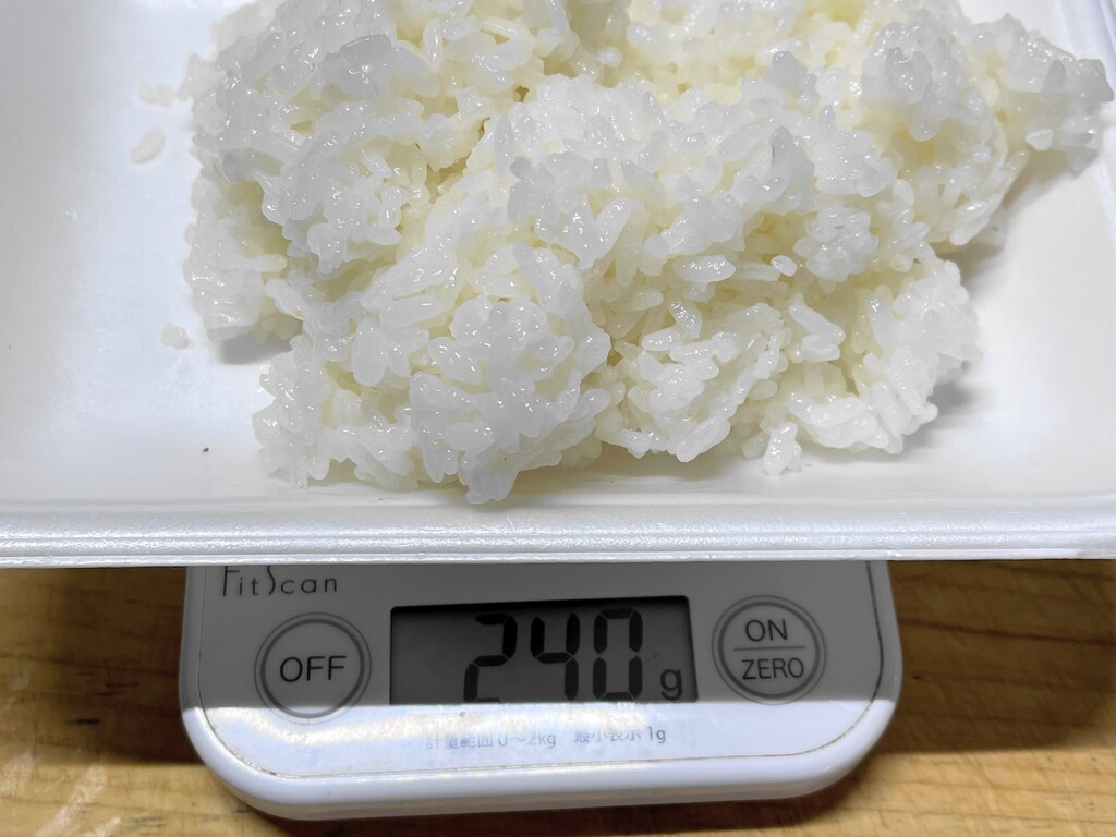 レシピによれば、すし飯の量は240gくらいが適量とのこと。初めてのこと故に、しっかり計量します。