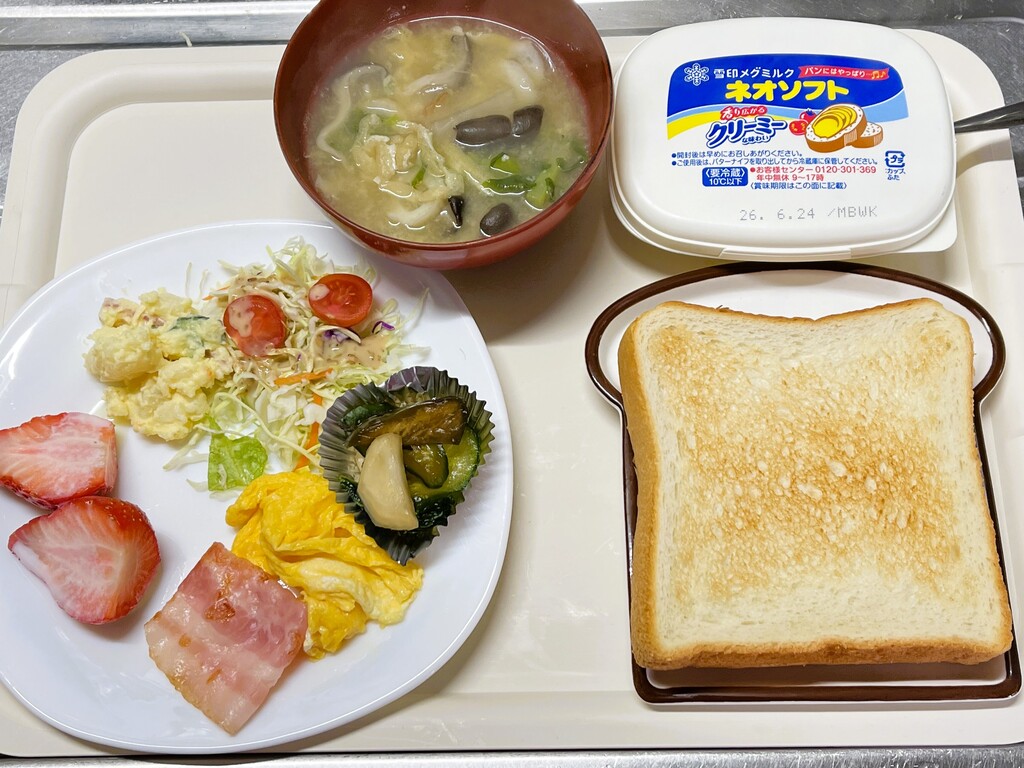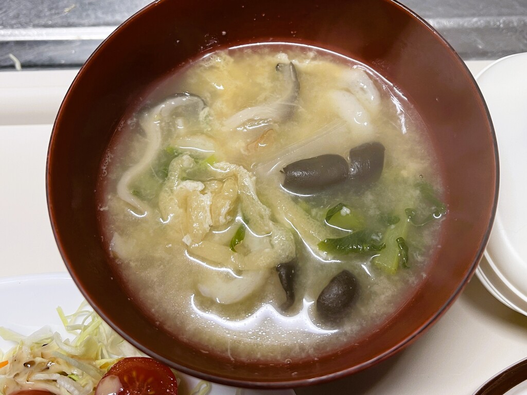 パン食とはいえ、日本人なので味噌汁は必ず付けます。何がポタージュだい‼️(笑)